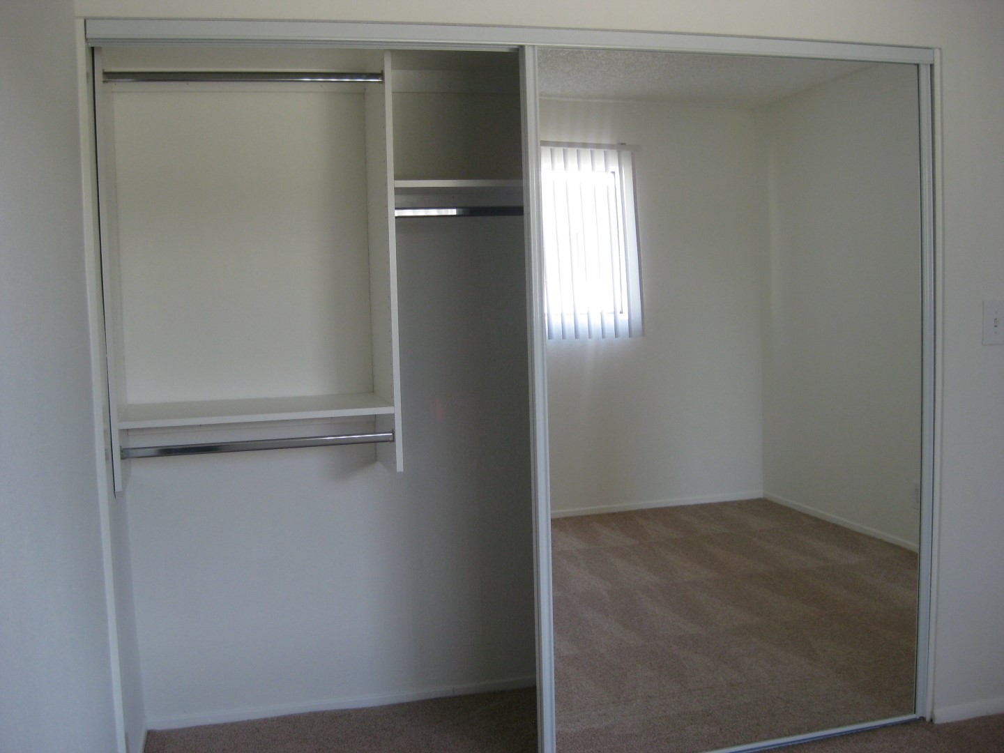 - Mirrored wardrobe doors and California-style closet organizers