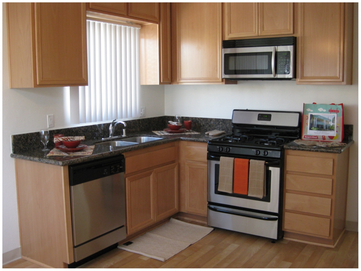- Built-in microwave, dishwasher, gas range and refrigerator