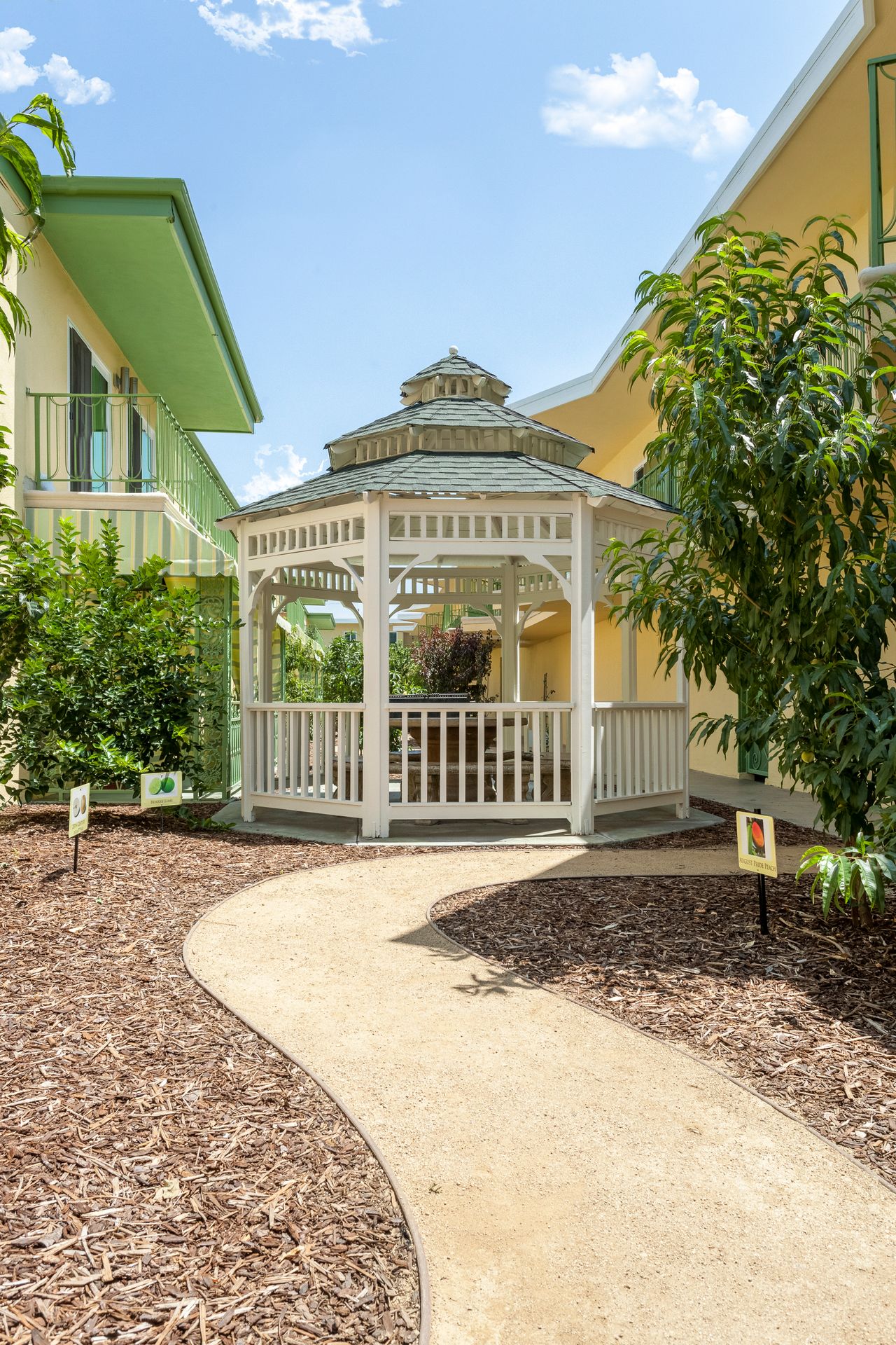 - Tranquil resident orchard with seasonal fruit: apple, apricot, avocado, citrus, stone fruit, and more